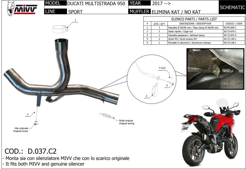 MIVV STAINLESS STEEL COLLECTOR [NO KAT]: Ducati Multistrada 950
