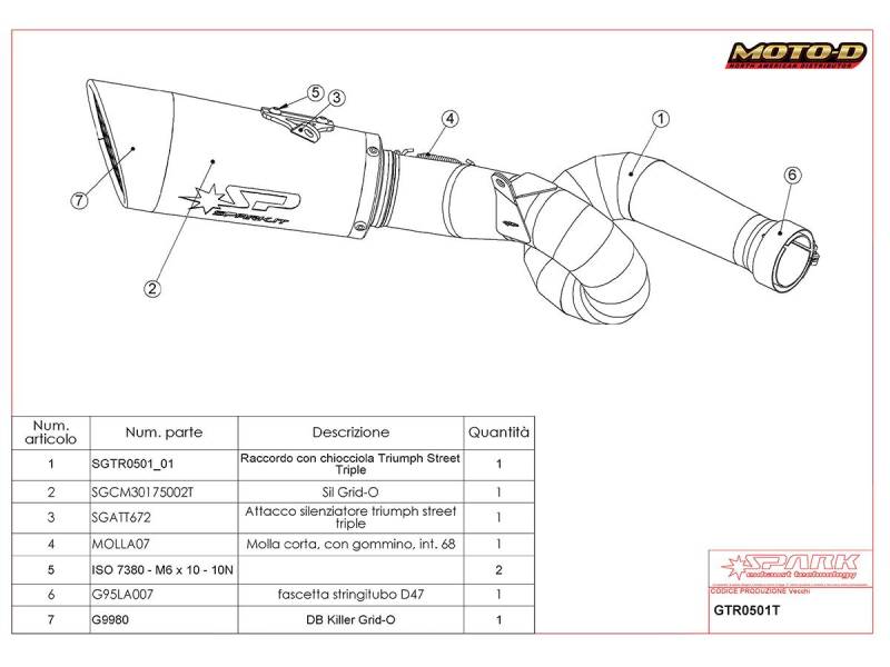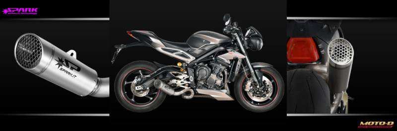 Spark Exhaust Triumph Street Triple 765 R/RS "Grid-O" Full Exhaust System. Titanium silencer with titanium link-pipe and stainless racing headers. Spark R&D has worked intensively on the new 3-cylinder engine by Triumph in Moto2. The experience gained on the racetrack allowed for the optimization of collectors' diameters and length of the English naked motorbike so as to get top performance. The exhaust has a deep sound that celebrates the Triumph's signature triple. Handcrafted in Italy. Ultra-light approximately 4.9 kg. Dyno Tested for maximum horsepower increase over stock, 113 db. Non-Homologated Racing Version for Maximum Performance. For perfect performance, throttle response and durability, ECU remapping is recommended. Includes SP-SKIT112 mounting hardware for all model years compatibility. *Includes Removable DB Killer SP-G9980.
