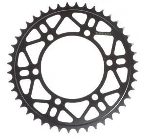 Superlite "Xtreme Duty" front sprockets are manufactured to be the lightest and most durable countershaft sprockets available today. Superlite front sprockets are made from case hardened chromoly steel to exact tolerances and the exclusive tooth profile offers a precise fitment over other brands. Most sprockets are drilled and lightened for less rotating weight while still offering massive strength for small to large displacement machines