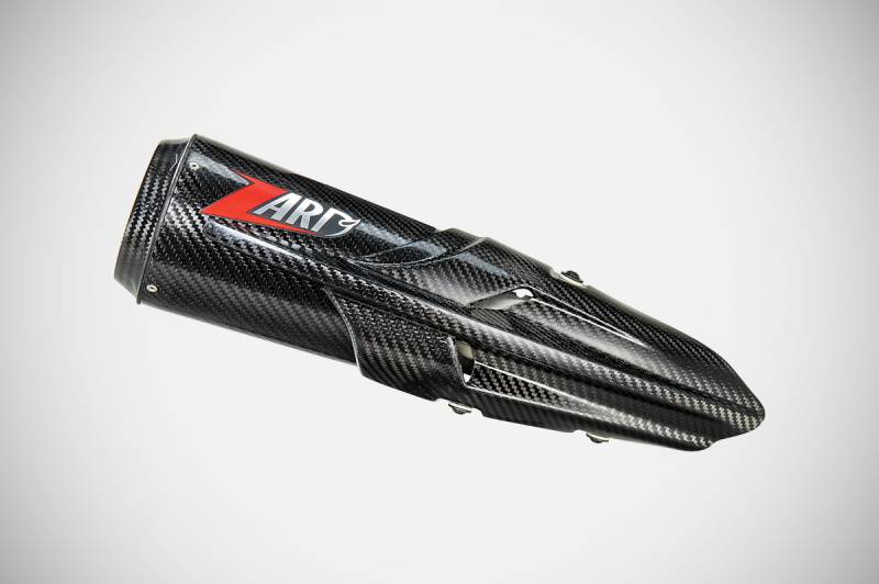 It is available in two versions: titanium or carbon. Both options offer a unique design, with a carbon heat shield giving the silencer an exclusive look.