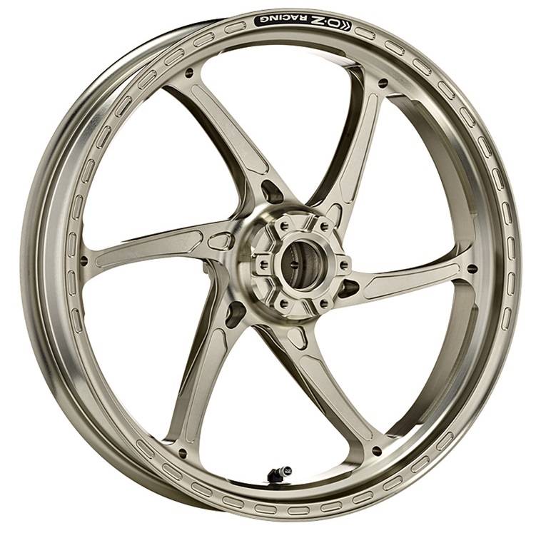 OZ Motorbike wheels are manufactured from a specially treated aluminum alloy using a multi-forging process which is the latest technology in forging high performance parts. Compared to other manufacturing processes, this multi-step forging process produces a wheel with a more uniform and homogeneous metal structure, resulting in a very lightweight and strong wheel.