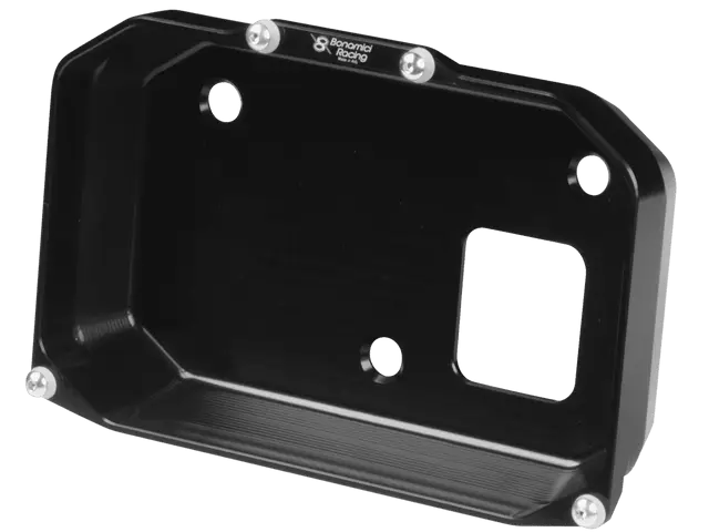 Bonamici electronic dashboard protection case cover is CNC machined to protect your screen display from damage in a crash. Features an exact fit aluminum case which the dashboard sits inside and a Plexiglas cover over it. Especially valuable for racers and performance track riders or anyone that wants to prevent damage to their sensitive and fragile electronic dashboard display. Anodized in Black. Includes rear access holes for all connectors.
