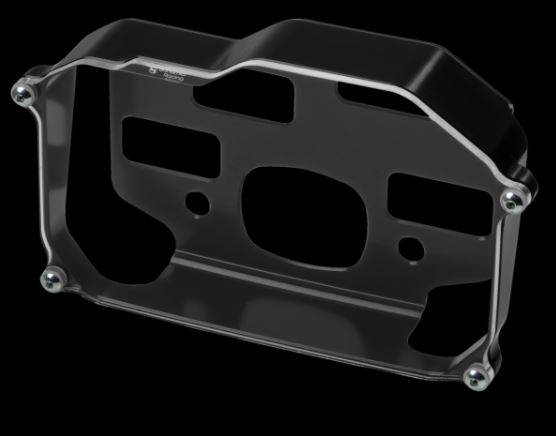 Bonamici electronic dashboard protection case cover is CNC machined to protect your screen display from damage in a crash. Features an exact fit aluminum case which the dashboard sits inside and a Plexiglas cover over it. Especially valuable for racers and performance track riders or anyone that wants to prevent damage to their sensitive and fragile electronic dashboard display. Anodized in Black. Includes rear access holes for all connectors.