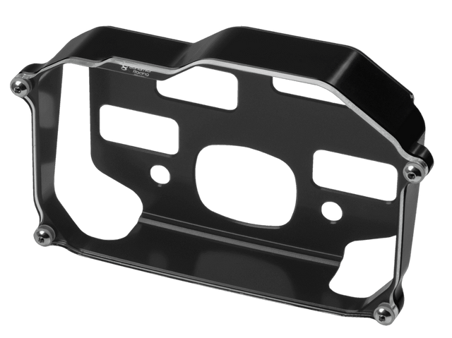 Bonamici electronic dashboard protection case cover is CNC machined to protect your screen display from damage in a crash. Features an exact fit aluminum case which the dashboard sits inside and a Plexiglas cover over it. Especially valuable for racers and performance track riders or anyone that wants to prevent damage to their sensitive and fragile electronic dashboard display. Anodized in Black. Includes rear access holes for all connectors.