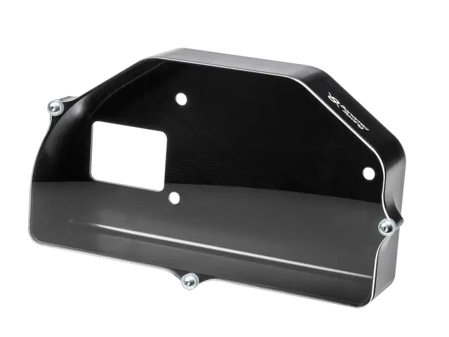 Bonamici electronic dashboard protection case cover is CNC machined to protect your screen display from damage in a crash. Features an exact fit aluminum case which the dashboard sits inside and a Plexiglas cover over it. Especially valuable for racers and performance track riders or anyone that wants to prevent damage to their sensitive and fragile electronic dashboard display. Anodized in Black. Includes rear access holes for all connectors.