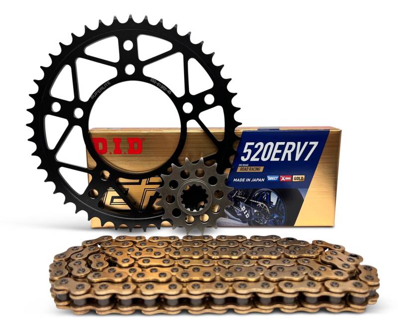 Superlite RSX Series conversion kits shave unsprung "rotating" weight which in turn provides better acceleration, braking and handling. All kits include high quality RSX-T Series sprockets with multiple gear ratio options and high strength D.I.D. X-Ring sealed chains cut to length. These championship winning sprocket kits are extremely strong and built to last!