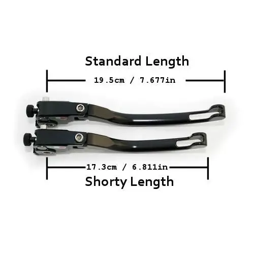 As a rule of thumb, those who use two fingers for clutch or brake should order shorty levers, and those who use three or more fingers should order standard length levers.